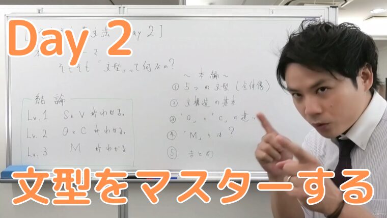 英文法のゼロイチ【Day2】そもそも「文型」って何なの? kobetsuyasan2025 2026年3月24日 画像をクリックするとUdemyのサイトにジャンプします♪英語は必ず伸ばせます。ただ、英文法の「そもそも」を理解していない状態で学習を進めても成果は出ません。私と一緒に英文法の「ゼロ」の部分をしっかりと掴みましょう!Udemy(ユーデミー)とは世界最大級のオンライン学習プラットフォームです。英文法の「そもそも」の部分を動画でわかりやすく解説しています。英文の根本的なルールさえ掴めば英語は必ず伸ばすことができますよ♪