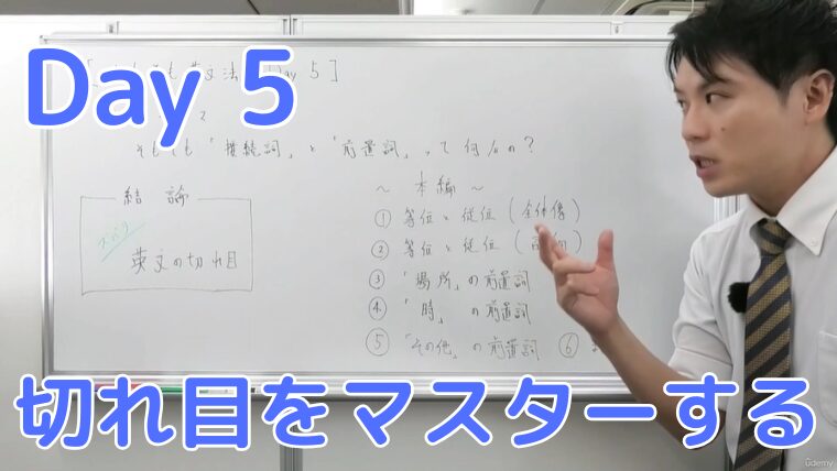 英文法のゼロイチ【Day5】そもそも「接続詞と前置詞」って何なの? kobetsuyasan2025 2026年3月24日 画像をクリックするとUdemyのサイトにジャンプします♪英語は必ず伸ばせます。ただ、英文法の「そもそも」を理解していない状態で学習を進めても成果は出ません。私と一緒に英文法の「ゼロ」の部分をしっかりと掴みましょう!Udemy(ユーデミー)とは世界最大級のオンライン学習プラットフォームです。英文法の「そもそも」の部分を動画でわかりやすく解説しています。英文の根本的なルールさえ掴めば英語は必ず伸ばすことができますよ♪